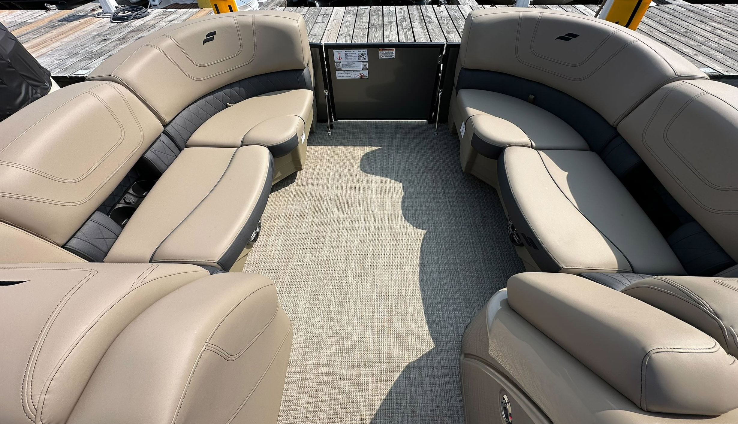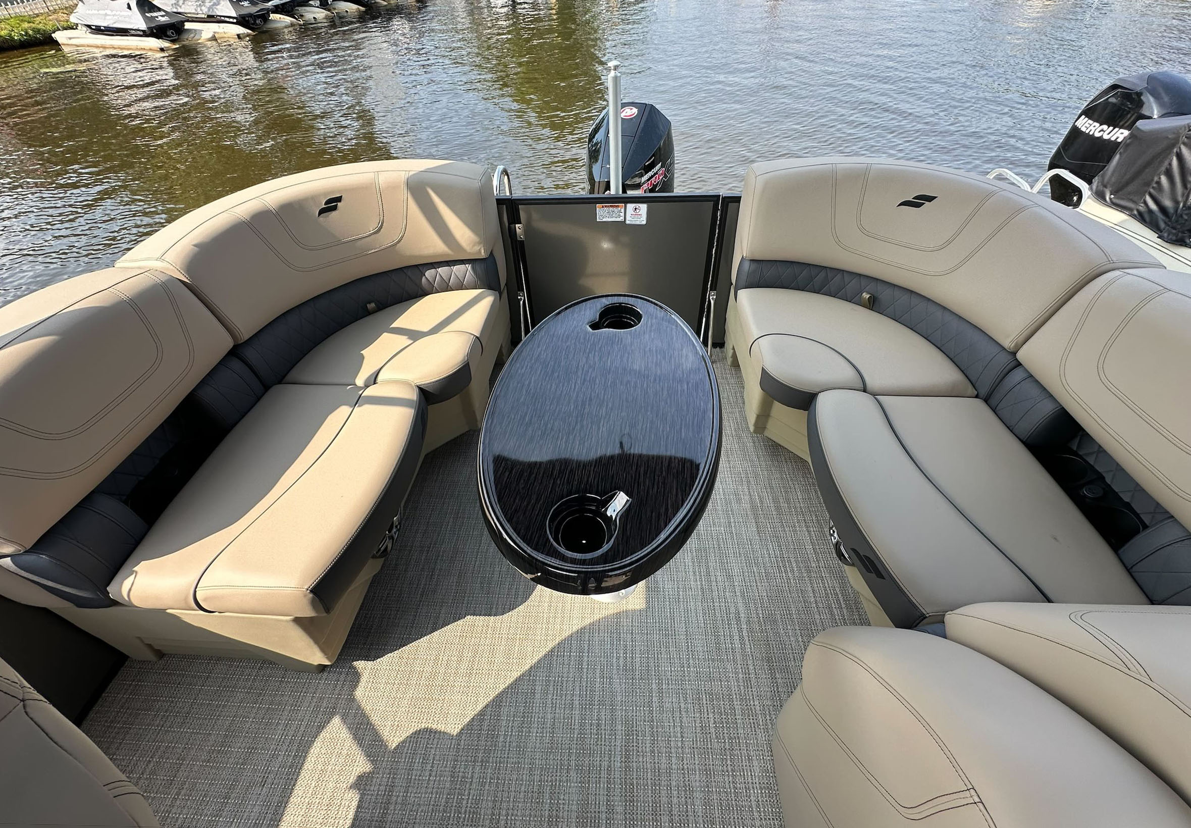 Just some of the upgrades and features include: black power bimini and playpen cover; full sea weave flooring in a neutral tone; extended deck; mood lights; sound system with speakers; GPS; pylon ski tow; stainless steel ladder, and more!